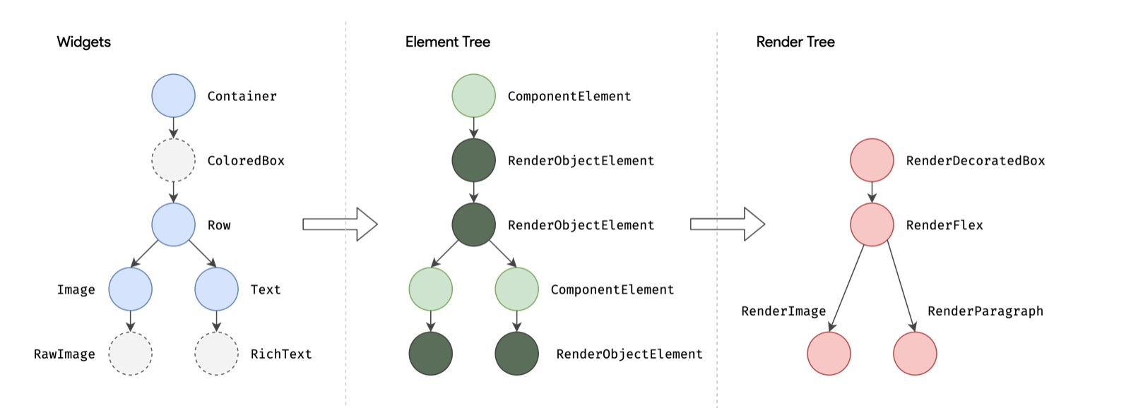 - 根据 Widget 树生成一个 Element 树,Element 树中的节点都继承自