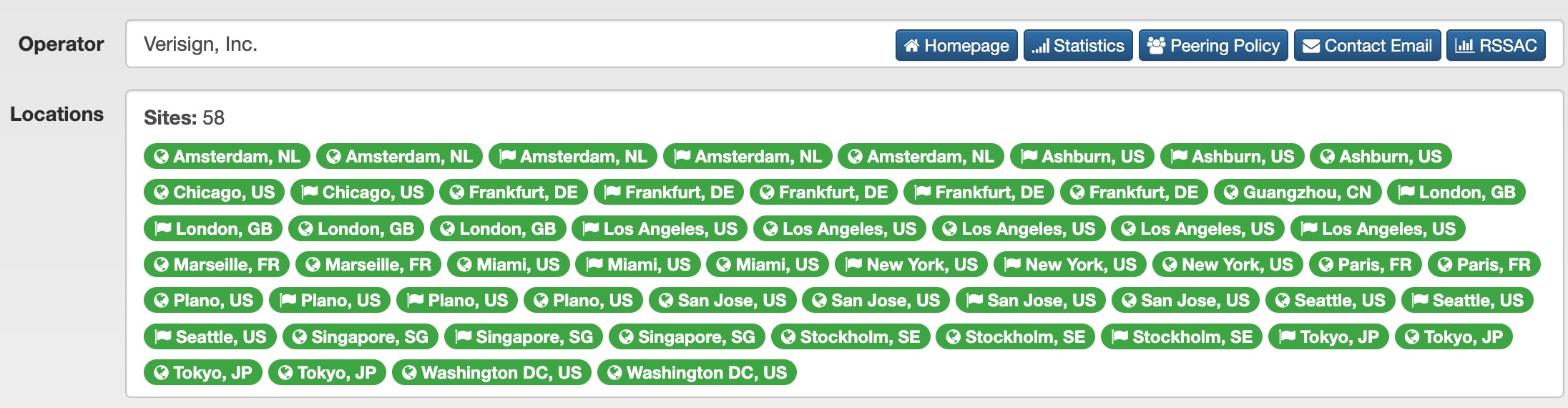 这13台根域名服务器由12个组织独立运营。A根是主根,由美国公司Verisign管理。每家公司为了保证根域名服务器的可用性,会部署多个节点。比如单单 A根 就部署了 58 台根域名服务器(2023年2月15日)。