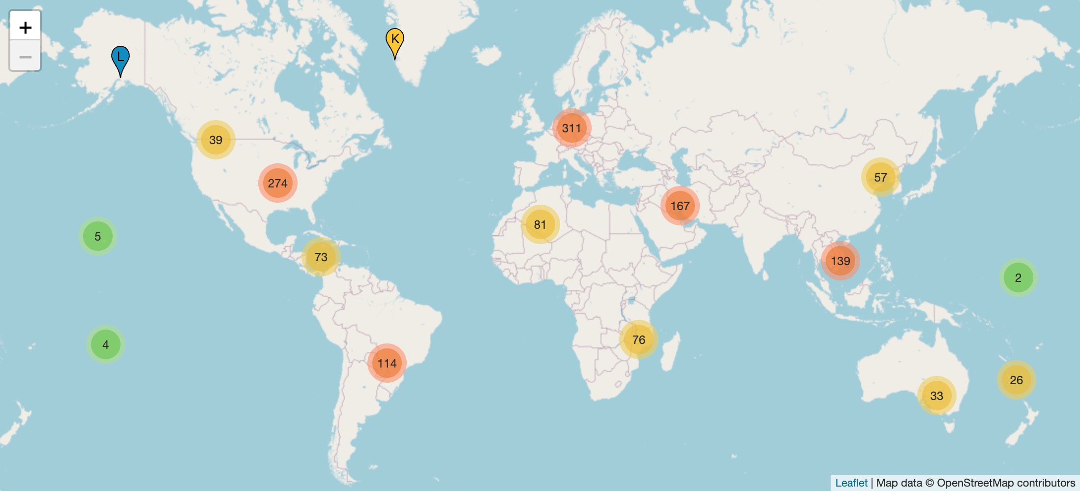 在 root-servers网站 上可以查到所有根服务器的分布,从网站展示的根镜像服务器地图上看(2023年2月15日),北京有 8 个根镜像服务器,上海 2 个,重庆 1 个,杭州 2 个,武汉 2 个、郑州 2 个、西宁 2 个、贵阳 1 个、南宁 1 个,海口 1 个,广州 3 个、香港 8 个,台北 9 个。